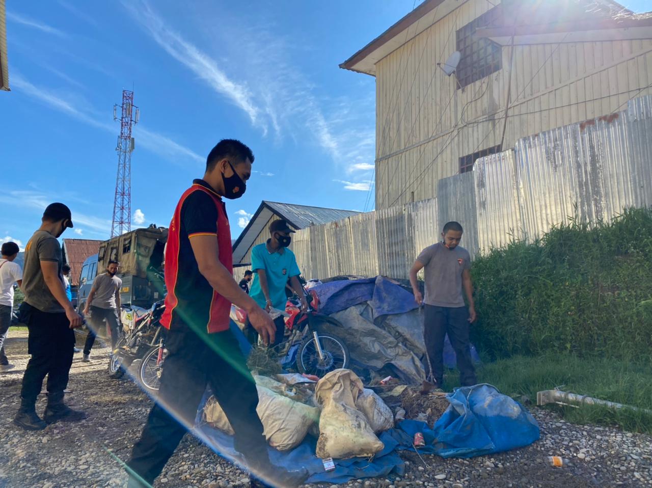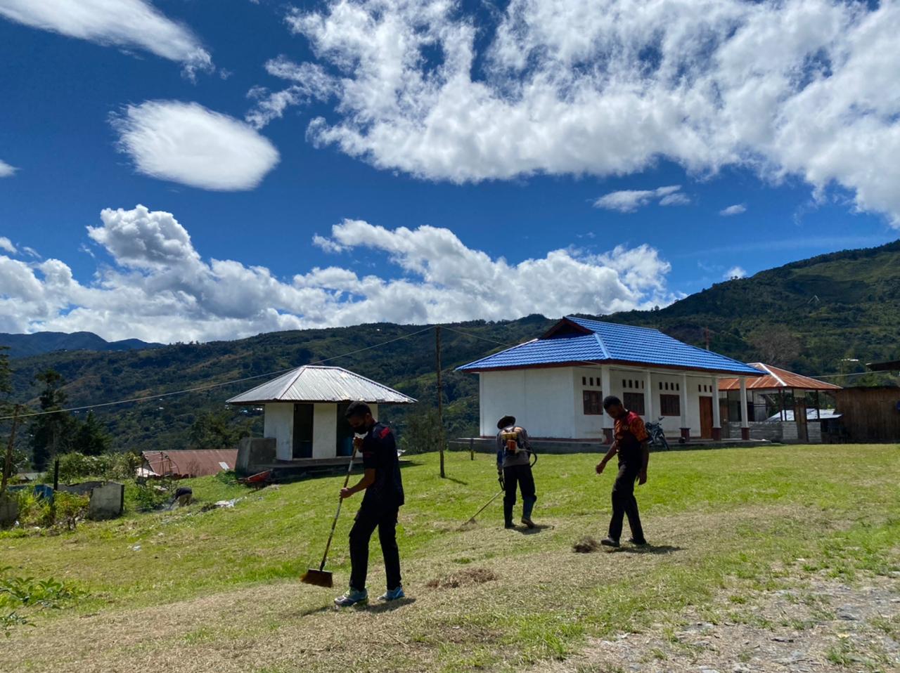Menyambut Hari Bhayangkara yang Ke-75, Personil Polres Tolikara Lakukan Kerja Bakti